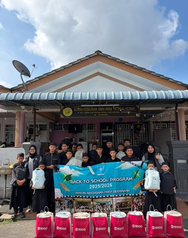 6 December 2025: 93 children at Rumah Kasih Harmoni, Paya Jaras received school bags, stationery, and books. 43 beneficiaries at Rumah Amal Asnaf Al-Barakh and 26 beneficiaries at Rumah Jagaan Kasih Murni, Taman Keramat also received school essentials.