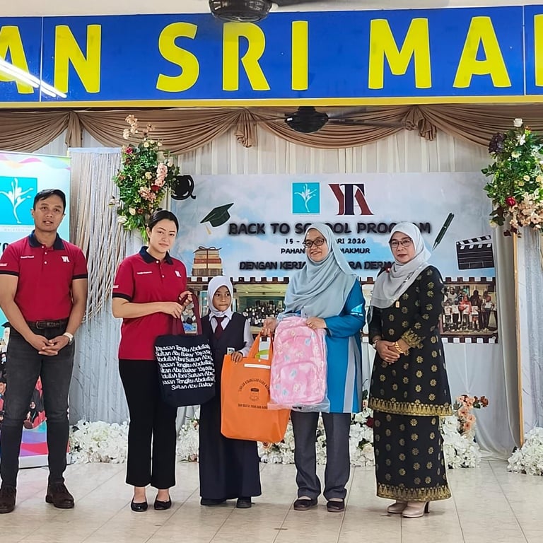 15 January 2026: In partnership with Yayasan Tengku Abdullah, 64 beneficiaries at Pusat Jagaan Wanita dan Kanak-Kanak Casa Harapan and Pertubuhan Kebajikan Baitul Husna Kuantan in Pahang received school essentials.