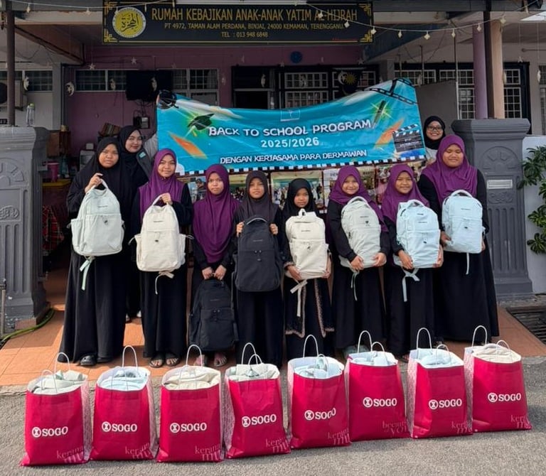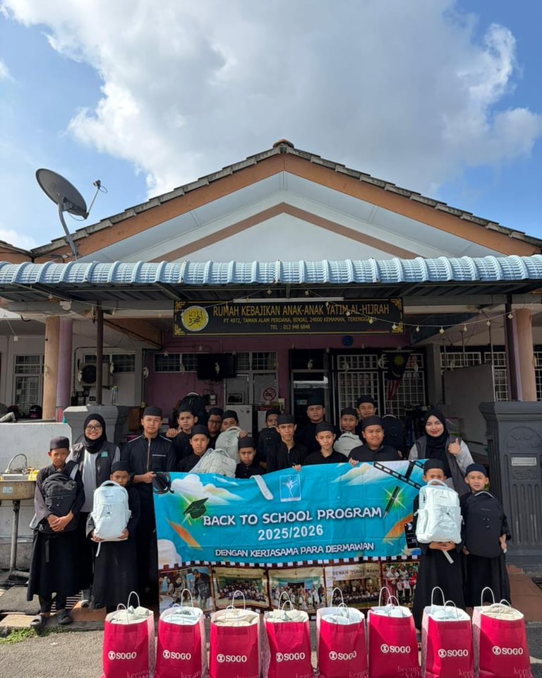 Final Distribution: At Rumah Anak Yatim Al Hijrah in Terengganu, sponsored by SOGO KL Sdn Bhd, children received essential school supplies to begin their term successfully.