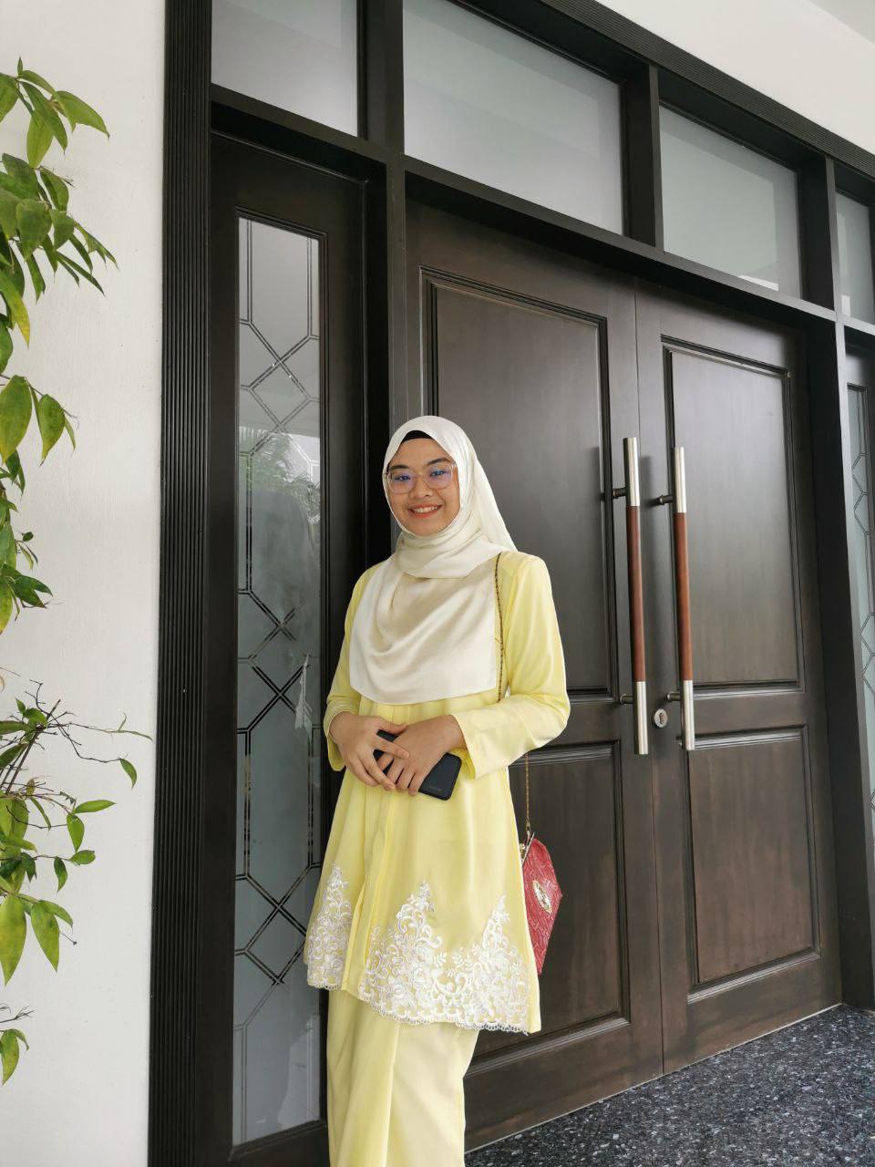 Auni posing with door.