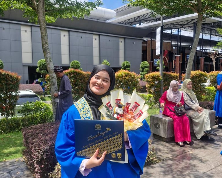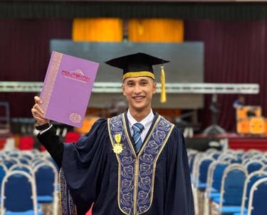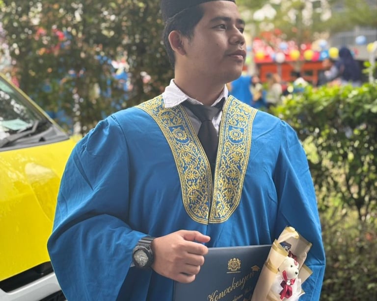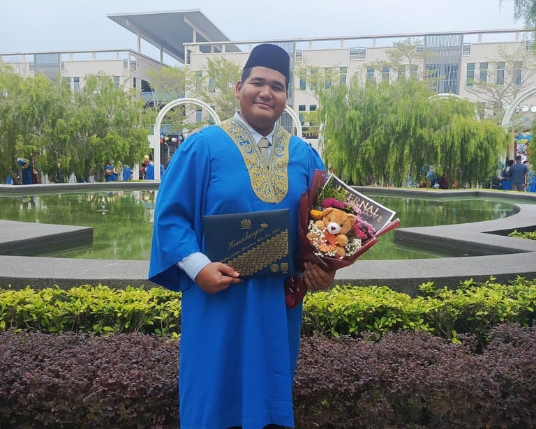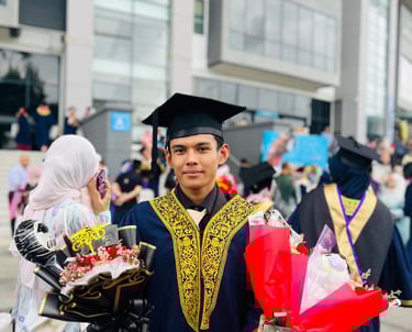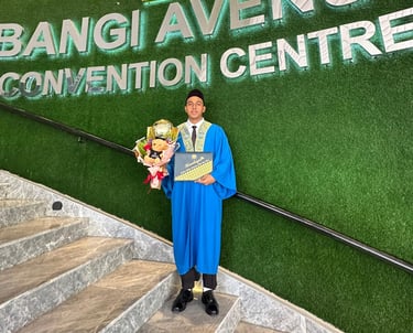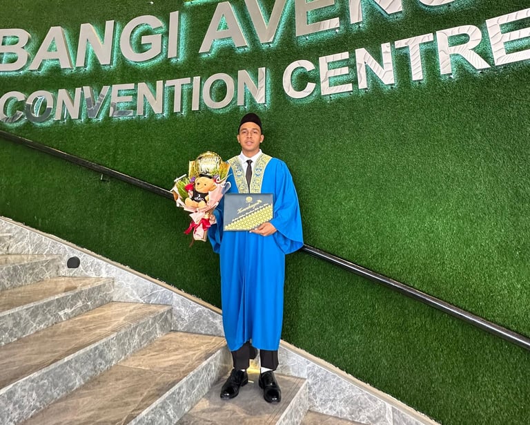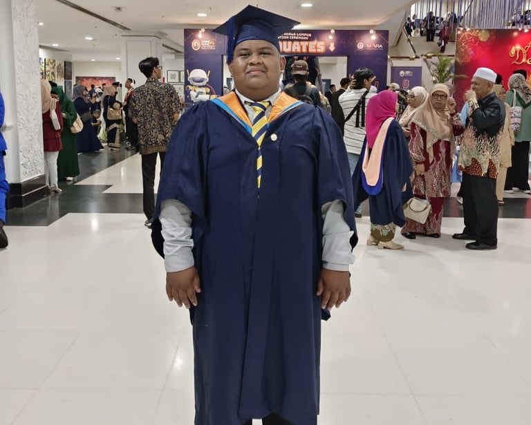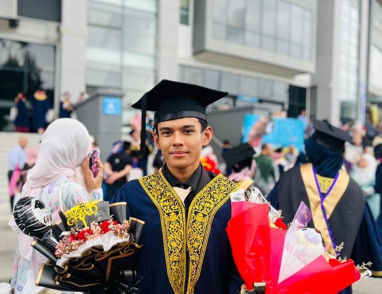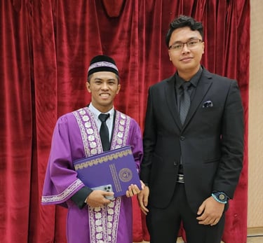 YEF MSIA staff accompanied Ariff (left) for his convocation day.