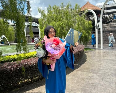 Annisha at her Faculty of Medicine, Pharmacy and Health Sciences hallway.