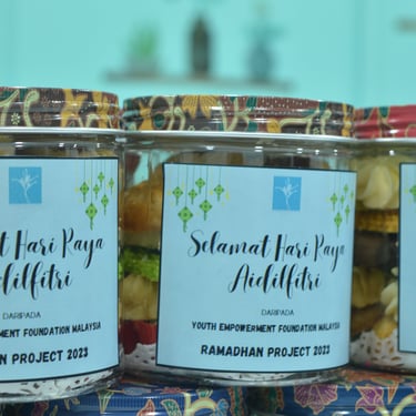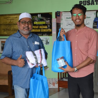 YEF MSIA distributed Aidilfitri preparation packs to the elderly residents of Pusat Jagaan Mahmudah in Semenyih, spreading festive joy and support.