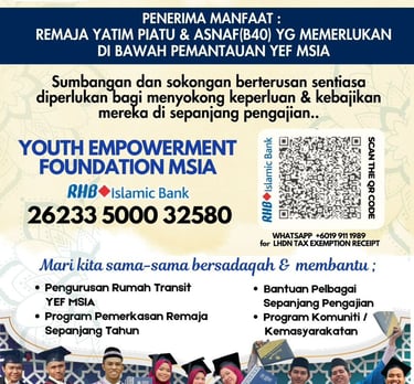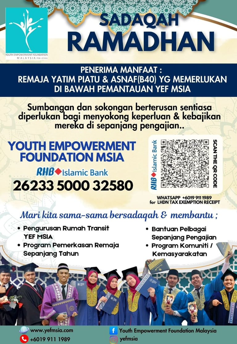Remarks : For LHDN Tax Exemption receipt, kindly WhatsApp your contribution to :