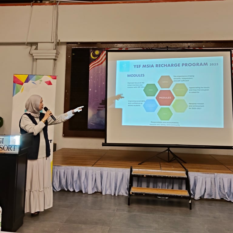 The YEF MSIA Recharge Program is a signature initiative by Youth Empowerment Foundation Malaysia dedicated to guiding underprivileged students as they move into Semesters 3 and 4—one of the most critical stages of their academic journey. As coursework becomes more demanding and decisions about internships and careers begin to take shape, this program steps in to provide structured guidance, mentorship, and motivation.
